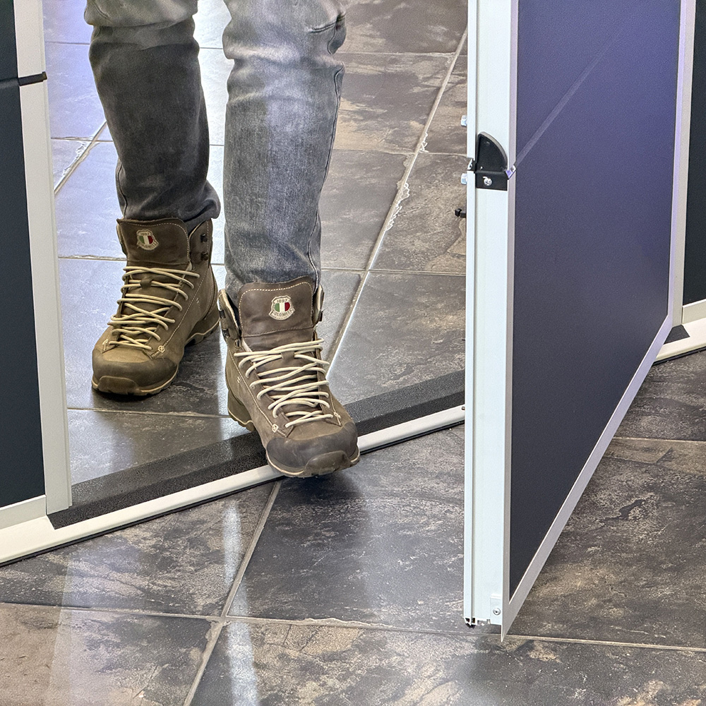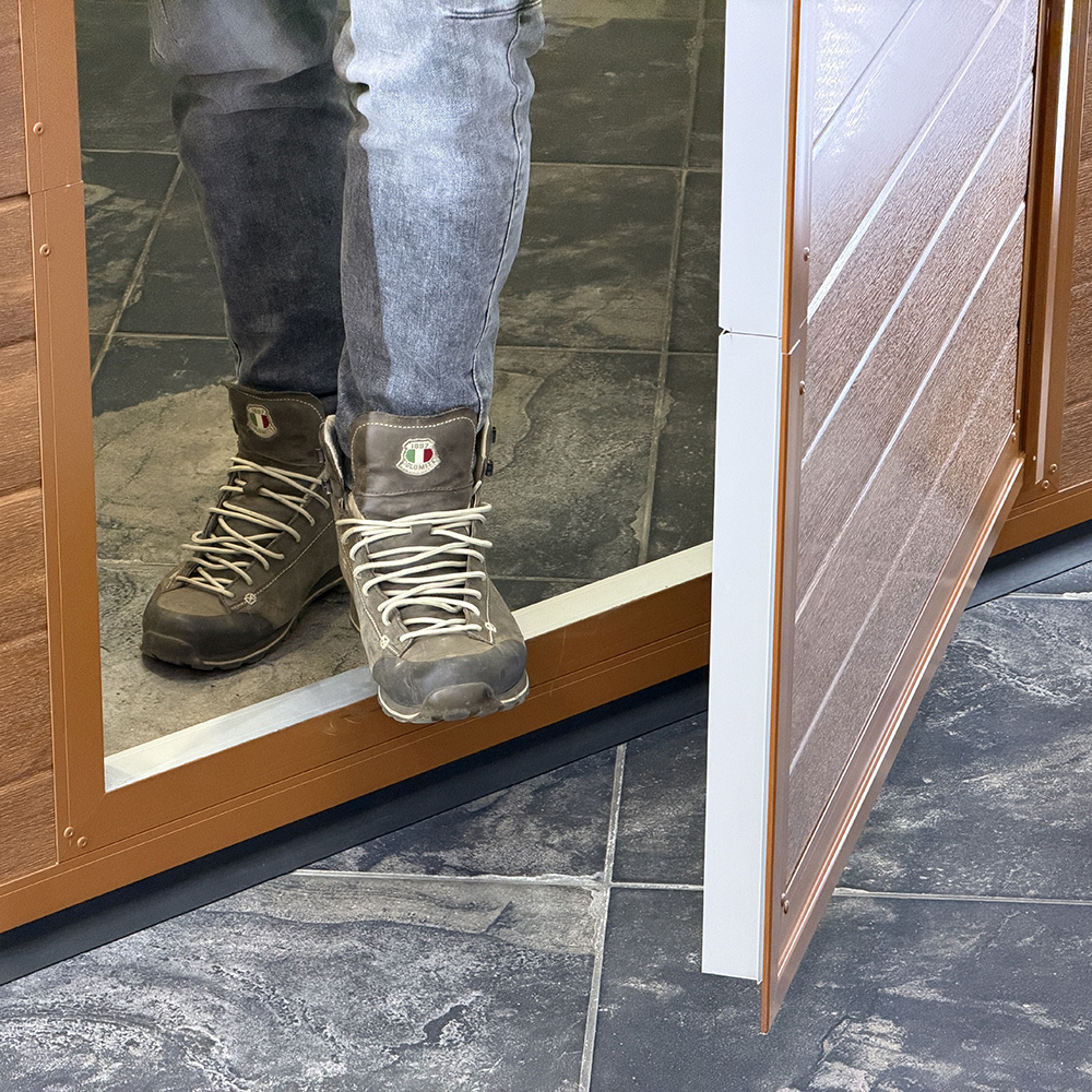 A színes keretek az ajtók lehetséges helyeit mutatják. Kattints oda, ahova ajtót szeretnél. Ezután válassz a zár és küszöbvariációk közül.